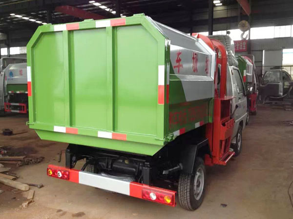 工作原理:自裝卸式垃圾車是由密封式垃圾廂、液壓系統(tǒng)、操作系統(tǒng)組成,能配幾十個(gè)垃圾桶,實(shí)現(xiàn)一車與多個(gè)垃圾桶聯(lián)合作業(yè),廂體上的液壓升降裝置可將垃圾桶吊上、放下,上下升降,上下一次工作循環(huán)時(shí)間為50S,密封式廂體環(huán)保衛(wèi)生,可避免二次污染。其自裝式的掛桶裝置可直接將路邊的垃圾桶掛在上面用提升機(jī)直接到在垃圾箱體里面省去了裝垃圾的麻煩。